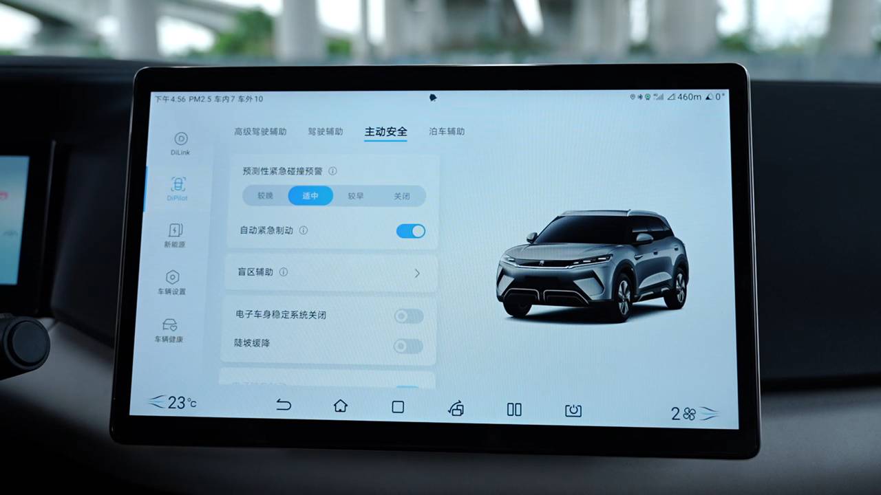 而在價格相仿的情況下,比亞迪元UP的配置水平明顯高出一層,尤其在主被動安全方面,前后排頭部氣囊、前排側氣囊、車道偏移預警、主動剎車、前后碰撞預警和駐車哨兵模式等配置,加上HUD抬頭顯示功能,對于新手司機而言可以大幅提高行車安全系數,L2級別的DiPoilt駕駛輔助的加入,也減輕了元UP車主在長途行駛時的疲憊感。