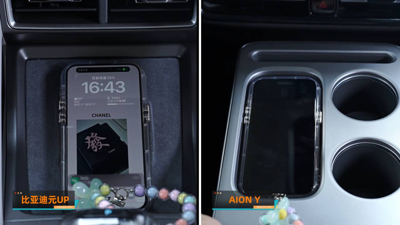 不過作為小型SUV,使用CTB結構的元UP,在2620mm的軸距下同樣將“得房率”盡可能提升,無論膝部的冗余還是頭部開楊感,都已經超乎預期,加之比亞迪提供了支撐充足、靠背貼服的座椅,還比AION Y增加副駕電動調節、前排座椅加熱、后排中央扶手,加上無線充電面板、遮陽板化妝鏡,所以從靜態乘車舒適度來看,元UP并沒有被AION Y甩開差距。