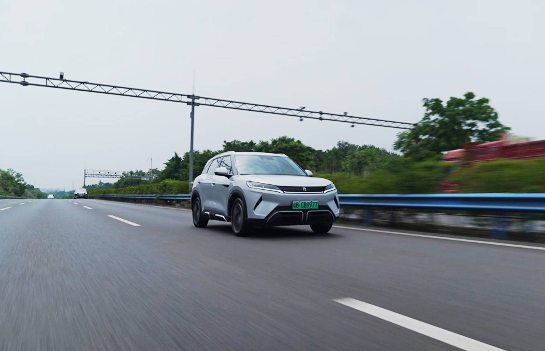 在城區行駛時,我們能體會到元UP面對路面顛簸的沖擊比AION Y更柔和,起伏路況下的懸浮感也強一些,通過減速帶之類的單項沖擊,元UP不會有太強余震,能量感控制得比AION Y到位。