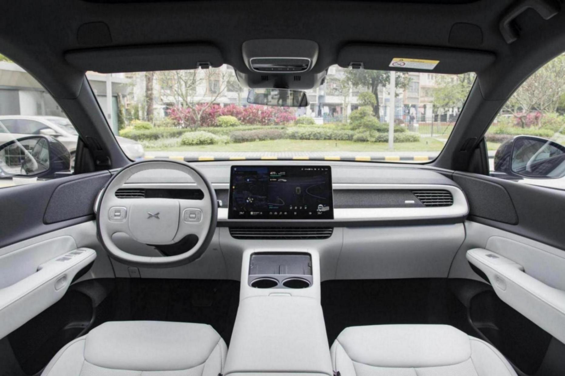 進入車內,小鵬G6給人的印象比較時尚、優雅,中控臺被分為多個層次,一眼看去,基本上找不到物理按鍵,就連方向盤上的按鍵,都經過精心設計,橢圓形設計為 上下車提供了更大的空間,真皮材質帶來更好的握感。在方向盤后方是10.2英寸的液晶儀表盤,平整的鑲嵌在中控臺上。