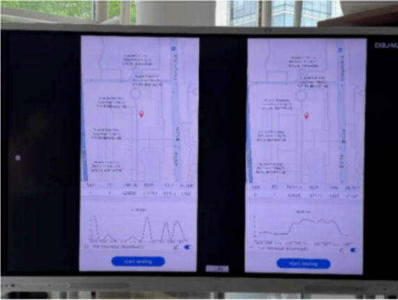 三堵墻穿損后的用戶體驗,左側(cè)為FDD 4T4R網(wǎng)絡(luò),右側(cè)為FDD Massive MIMO網(wǎng)絡(luò)