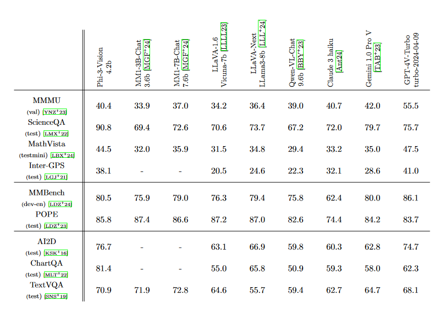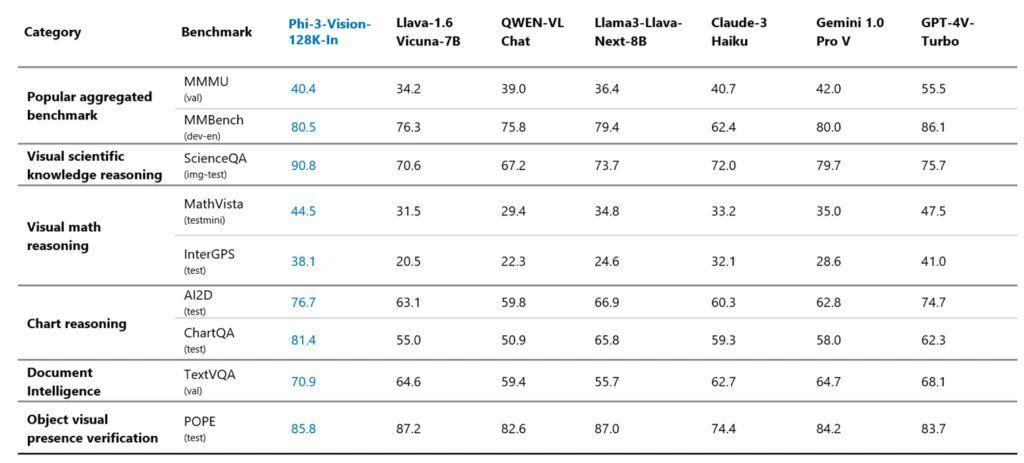 首頁 > 生活分享 > 免費教學 > 微軟Phi-3-vision基準測試,和Gemini 1.0 Pro相當