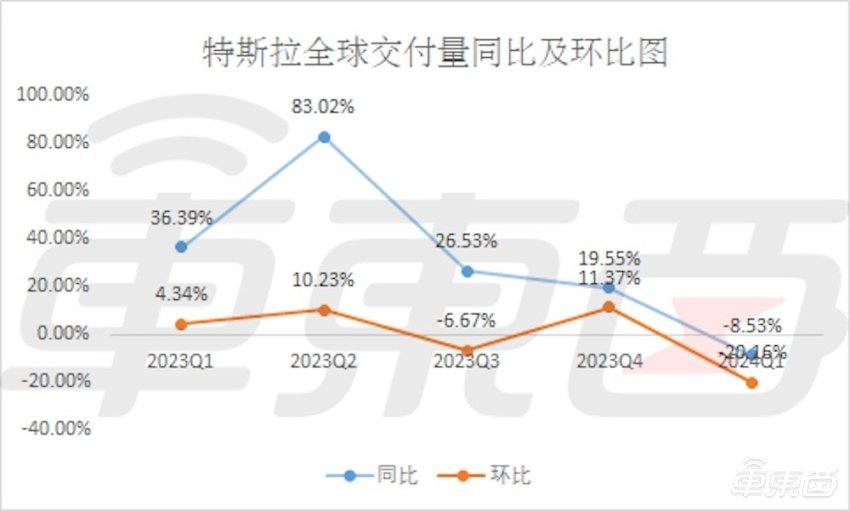 特斯拉全球交付量同比及環比圖(制圖:車東西)