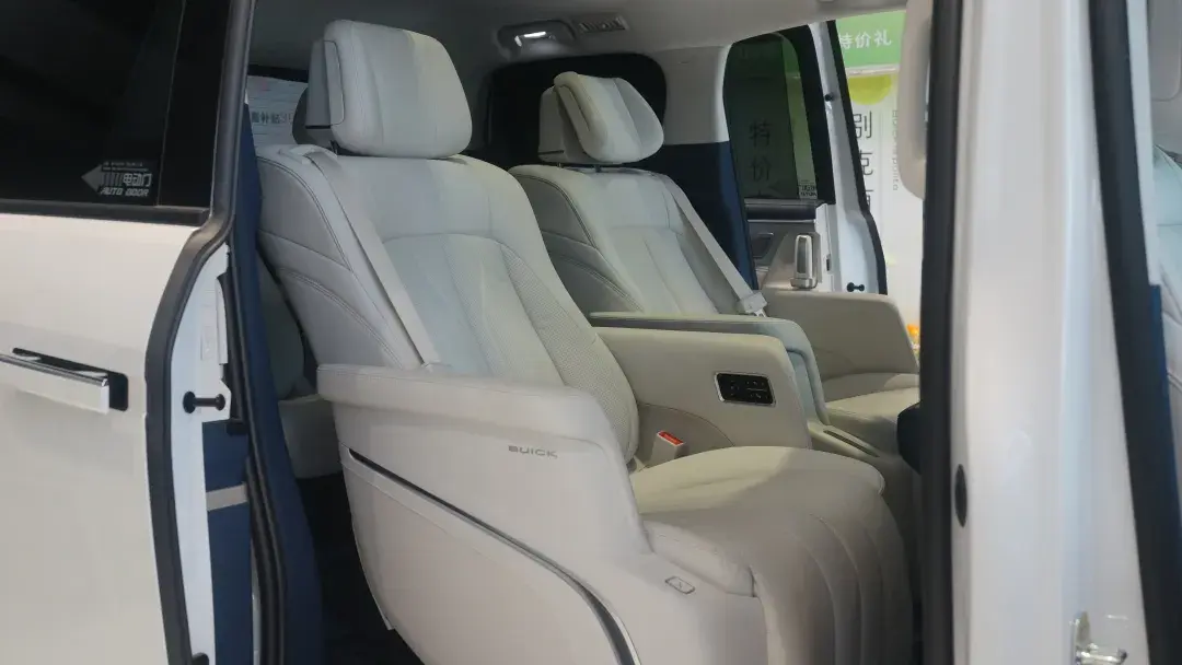 坐進第二排后首先讓人感慨的是:完全不用懷疑GL8打造 MPV車型的專業!我們看到,這臺6座版車型的中排配備了Nappa真皮羽感航空座椅,其擁有六向航空頭枕,四向腰托、電動腿托、三檔位快速加熱通風、八點式三強度按摩,基本上能想到的舒適功能全都有。并且,全新加厚靠背型面對人體的貼靠度由73%提升至89%,SurFlex慢回彈發泡層,壓陷量更大,包裹感更強。