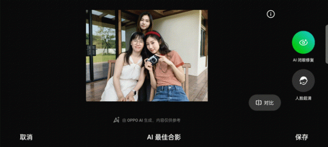 此外,OPPO Reno12與Reno12 Pro均擁有強大的AI功能,例如之前廣受大家好評、被不少手機品牌跟進的OPPO AI消除功能就在Reno12系列上繼續搭載,只需簡單圈選后,AI就可自動消除畫面中亂入的人和物,真正實現絲滑P圖。除此之外,Reno12系列兩款機型均搭載AI閉眼修復功能,倘若在拍合照時有人出現閉眼的情況,開啟AI閉眼修復功能后就能將其還原成正常的「睜眼」照片,輕松解決了拍大合照總有人閉眼這一大難題。