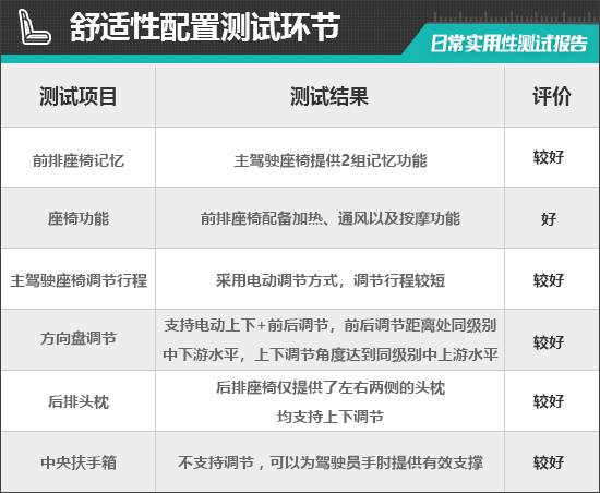 二、舒適性配置測試環節