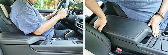 前排中央扶手采用不規則造型設計,整體面積較大,表面采用皮質包覆,枕靠舒適性得以保證。前排中央扶手不支持前后或角度調節,不過駕駛者在駕駛過程中依然可以將肘部搭在上面。
