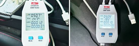 同時,我們對USB接口的電壓與電流進行了測試,前排Type-C接口的最高電壓為5.07V,電流為1.47A;后排Type-C接口最高電壓為5.09V,電流為1.95A。