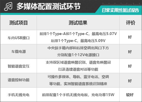 經過實測,評測車的智能語音系統能夠全部識別、并進行操作上述功能,在接到命令后,系統反應速度較快。語音系統對于模糊語義識別較為精準,同時支持雙區域語音喚醒識別、語音免喚醒詞以及連續語音對話等功能,整體表現在同級別車型中可圈可點。