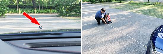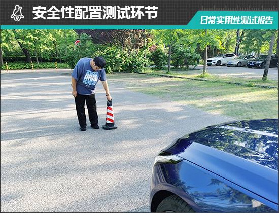 在測試前方視野環節,我們采用高70cm的樁桶作為參照物,隨后調整車距,直至在主駕駛位可以看到樁桶上沿。經過測試,樁桶與車頭最終測得的數據為2.86m,在測試過的同級別車型中處于中下游水平,前方視野盲區較大。