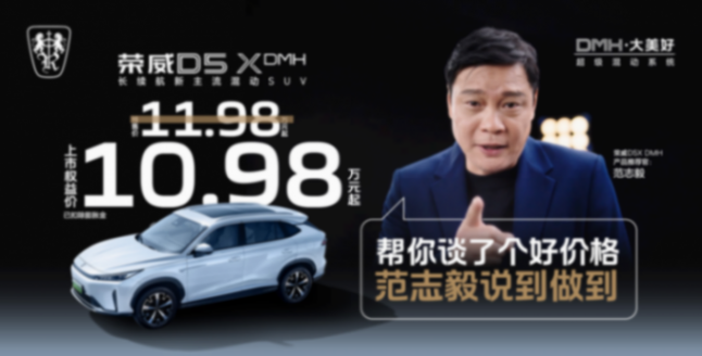 5月20日,榮威D5X DMH正式上市。此次直播活動中,五哈大哥范志毅親自上陣,為用戶爭取到了1000元定金可以膨脹至11000元的限時特權,最終只花10.98萬元就能入手這款爆款混動SUV。