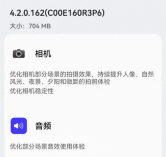 這次更新并不是簡單的刷版本號,而是優化相機部分場景的拍攝效果、提升部分場景屏幕操作靈敏度。