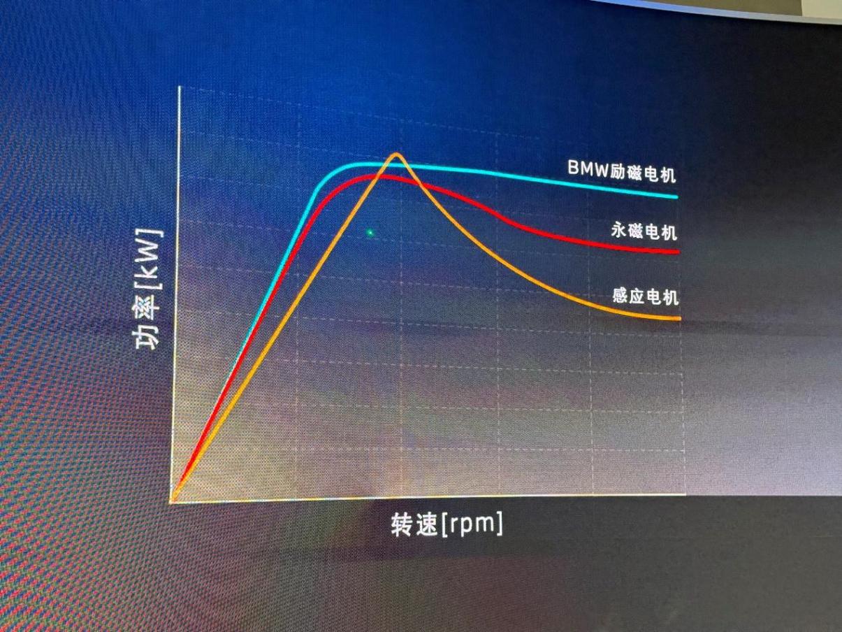 寶馬i5使用的勵磁電機,在功率輸出上相較于永磁電機和感應電機,功率爆發轉速更低,持續轉速范圍寬,這也就能解釋為什么起步瞬間加速感很強。