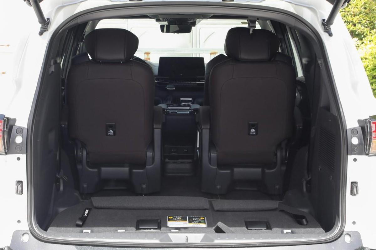 提到儲物,格瑞維亞在三排座椅使用的情況下,后備廂的原始容積還是有525L,放下多個28寸拉桿箱是沒有問題的。同時,靈活的座椅能夠在2-7座之間調節,在放到后兩排之后,后備廂的儲物容積能擴展至2112L。需要提到的是,車輛的備胎還是布局在了后備廂中,但不并不是中央放置,而是左側布局,在后備廂放滿行李或貨物的時候,拿取使用也更容易些。