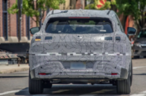 從車頭來看,車輛點亮的日行燈與轉向燈清楚地展示了它的燈區位置,分體式得等一部分出現在了引擎蓋邊緣貫穿的條帶結構上,一部分嵌入到了V型框架的橫幅格柵中網兩端,這種以光帶為主形成的照明系統與格柵裝飾中網,讓這里看上去是一副未來主義風格。同時,車頭結構還保留了下進氣孔,梯形結構的兩端預計會提供獨立霧燈區間,并嵌入一些擾流裝飾,讓車輛保有一定運動味道。