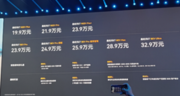 4月15日,星紀元ET預售發布會在北京舉行。本次星紀元ET共提供純電版與增程版兩種,分別是REEV系列:Plus 19.9萬元、Pro 21.9萬元、Pro+ 23.9萬元,以及BEV系列:Pro 23.9萬元、Pro四驅 24.9萬元、Pro城市智駕 25.9萬元、Max 28.9萬元、Ultra 32.9萬元。