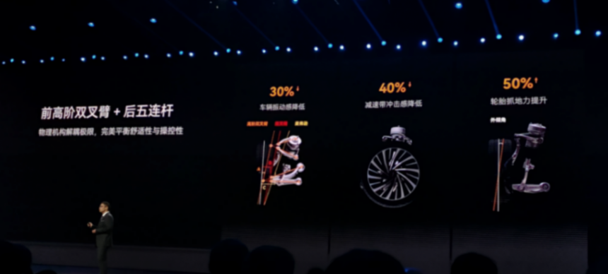 懸架方面,星紀元ET采用的是全鋁底盤和前雙叉臂+后五連桿獨立懸架結構,同時還配備了了IAS智能空氣懸架與CDC電磁減震系統,“硬件”方面的表現不錯,配合輔助系統,能夠智能預瞄前方路況,然后調整懸架高低與阻尼的軟硬程度,保證駕乘的舒適性。