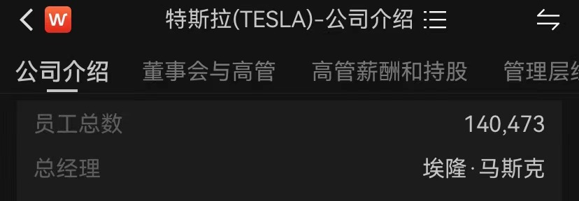 特斯拉員工有多少?Wind信息顯示,約為14萬人,如果裁員10%,就是1.4萬人左右。