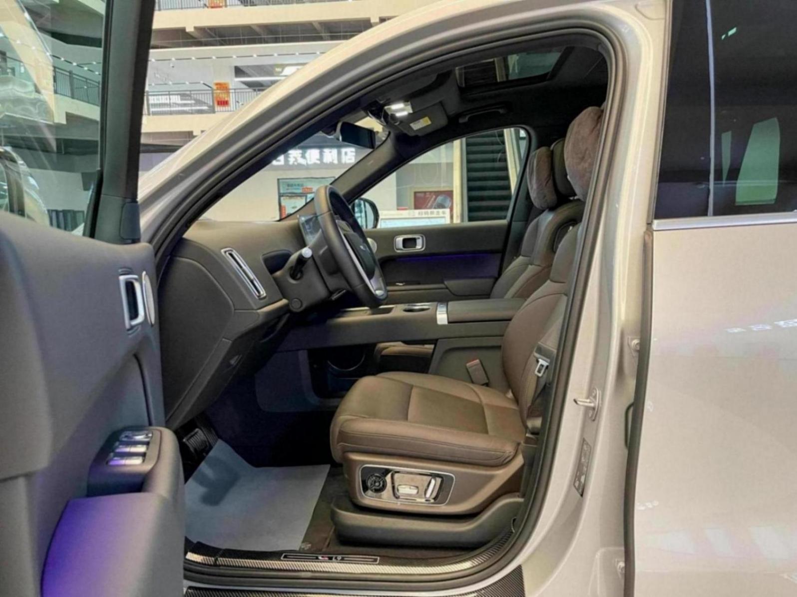 內飾方面,平底式真皮方向盤,并且巧妙的運用了鍍鉻條裝飾,看起來很有檔次感,還支持電動調節、記憶、加熱,實用且舒適。讓人眼前一亮的大聯屏,車機升級為8295高性能版,并且三塊屏幕都是四代的OLED屏幕,確保了色彩的豐富與真實。此外,手機無線充電也由之前的15W升級到了50W,提升了便利性。