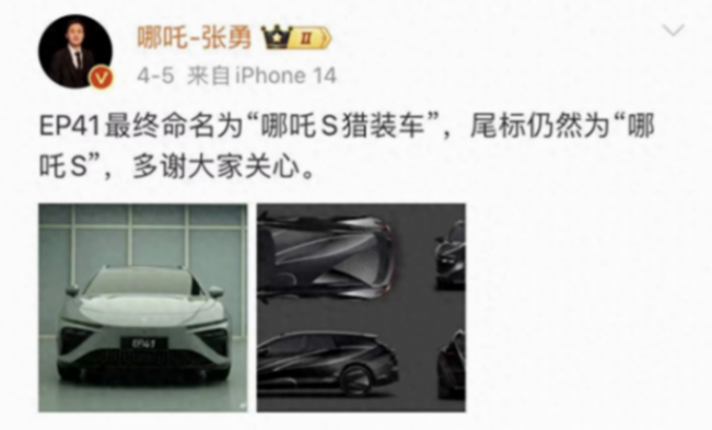 哪吒S獵裝車出現在了新一批的工信部新車申報目錄中。此前,哪吒汽車CEO張勇在社交平臺表示,哪吒EP41最終定名“哪吒S獵裝車”。作為哪吒S的衍生版車型,哪吒S獵裝車基于哪吒山海平臺2.0架構打造,新車將于2024年北京車展前后亮相,并將在2024年中期上市交付。作為參考,現款哪吒S三廂轎車的指導價為15.48萬-22.48萬元。