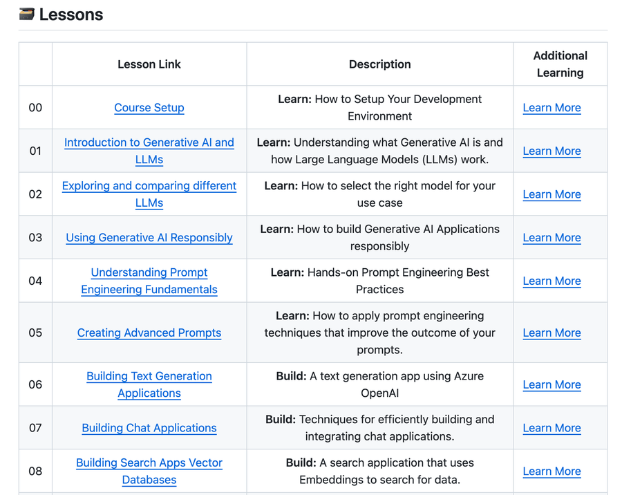 開源項目地址:https://github.com/microsoft/generative-ai-for-beginners