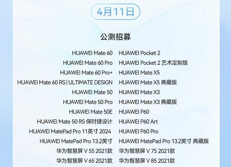 - 華為Mate Pad Pro11英寸2024、華為Mate Pad Pro 13.2英寸等等。