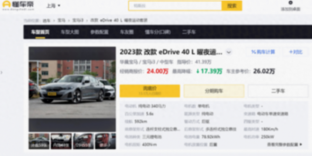 就拿寶馬來說,旗下這款中型轎車(寶馬i3 2023款 改款 eDrive 40 L 曜夜運動套裝),官方指導價為41.39萬元,如今終端市場有著17.39萬元的優惠力度,惠后僅24萬元,那么它是否值得入手呢?