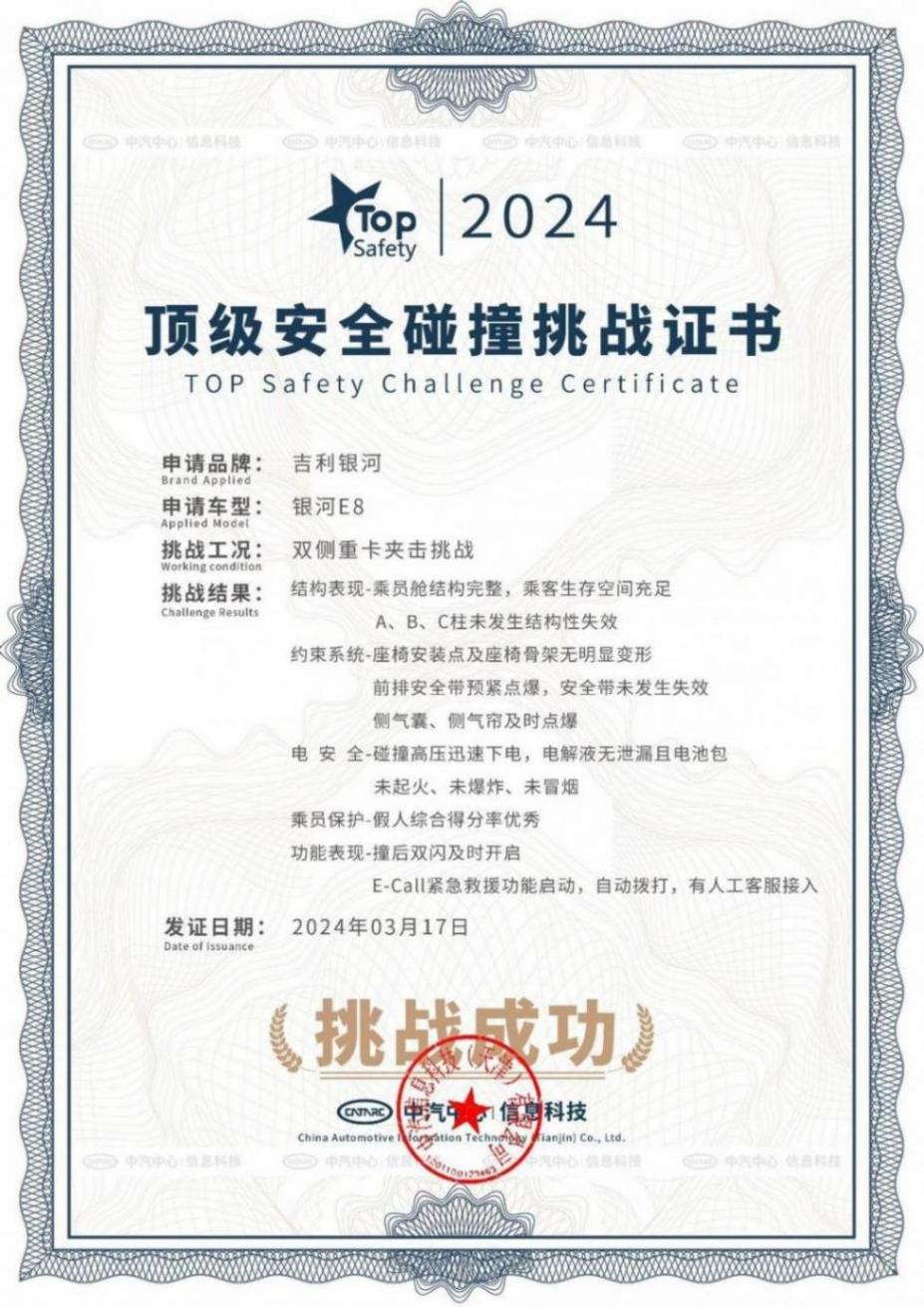 而且吉利不僅僅關心電池安全,他們同樣看重整車安全。就像那個銀河E8,扛住了20噸貨車的撞擊,你說牛不牛?吉利在安全上真的是下了大功夫,國產車里要論安全,吉利絕對是佼佼者。