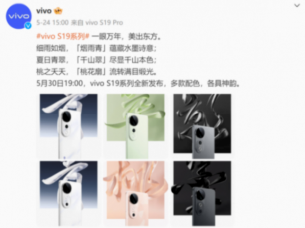 雖然發布會尚未召開,但此前vivo官方也公布了vivo S19系列的煙雨青、千山翠、劍影灰、桃花扇、松煙墨五款新配色,從下面的截圖可以看到,這五款新配色不僅顏值高,而且內涵豐富。當然,除了配色之外,vivo S19系列帶來直屏曲屏兩種版本,以及全系加入日出云階鏡組的信息,也已經公布,而且直屏版的機身薄至7.19mm,喜歡輕薄手機的朋友可以期待一下。而且今晚的發布會上,vivo官方很可能還有更多新機外觀亮點公布,大家記得關注。