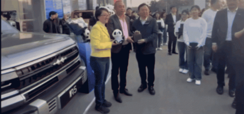 除此之外,王傳福還在濟南的騰勢中心,為全新N7車主們舉辦了一次交車儀式,還有為方程豹車主交車,讓客戶站C位;