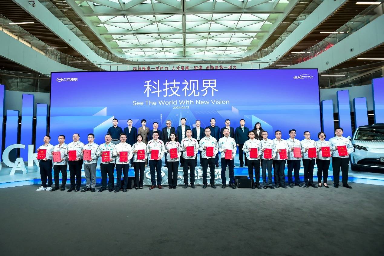 廣汽集團以科技創新積累了顯著的技術成果。圖為在2024廣汽科技日上舉行的2023年度“廣汽集團科學技術獎”獲獎項目表彰。