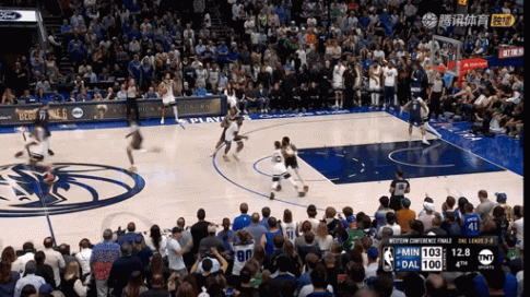 第二場愛德華茲最后連續被夾擊傳球不順,遭了盧卡的絕殺;上一場他找到了心得,多用兩翼跳投,避開達拉斯的中路;今天第四節,分差毫厘之間時,愛德華茲一個韋德式側翼打板中投,然后: