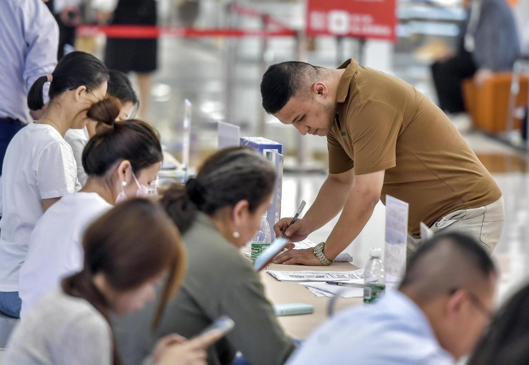 2024年5月11日,大中城市聯合招聘高校畢業生專場活動在新疆烏魯木齊市沙依巴克區一大型商場舉行。40余家企業到場提供200余個就業崗位,吸引高校畢業生到場尋找就業機會。中新社記者 劉新 攝