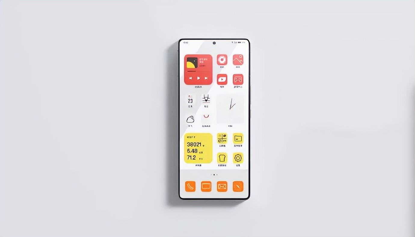 整個桌面UI主要以白色/黃色/紅色為主題,不同的顏色也代表了不同的應用分類,橙色代表了通信應用,白色就是工具類應用,黃色則是系統自帶應用,紅色則是多媒體應用。