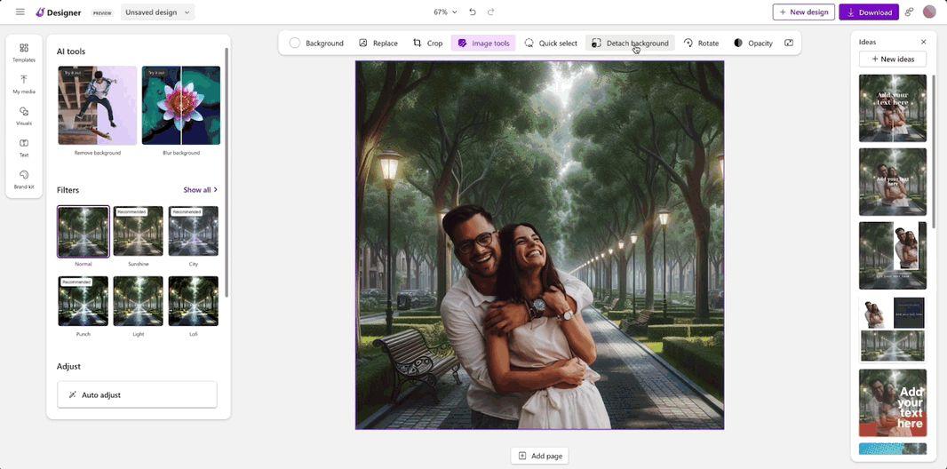 用戶進入 Microsoft Designer 后,可以應用模板、添加視覺效果并使用人工智能工具來幫助您進一步個性化照片。