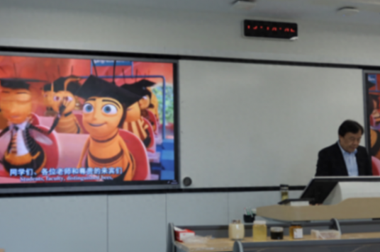 1點25分。胡福良拉下電子屏幕。隨后,他點開一個視頻,播放一部蜜蜂主題的動畫電影。平時,他會收集跟蜜蜂相關的科普片,在課堂上播放。聲音響起后,學生們陸續抬起頭,他們分別來自浙江大學十六個不同的專業。