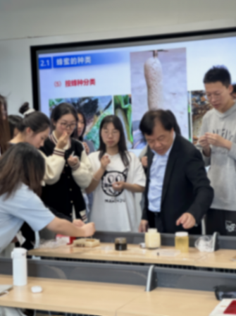教書39年,講課本身對胡福良來說并不難。正在進行的《蜂產品學》是動物科學學院的專業課,和作為通識課的《蜜蜂、生態與人類》比起來,學生相對少了些。后者面對的是全校不同專業的學生,甚至有不少留學生。“通識課更注重基礎性和綜合性,使學生拓寬視野。”但如何打破課堂的沉悶,讓教學變得有趣,對他來說同樣重要。