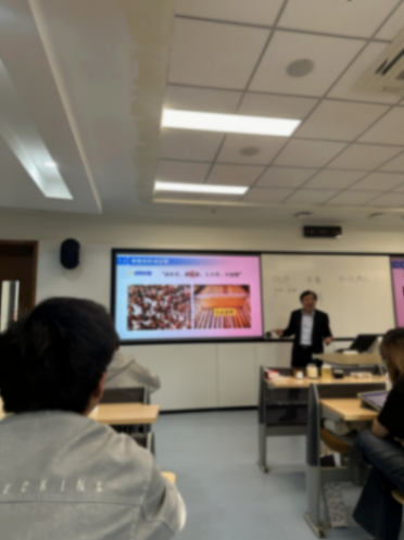 之前的課堂上,學生自我介紹時,他會在筆記本上記下關鍵信息,尋找能夠跟學生互動的話題。時下年輕人喜歡的流行語,他也放進課件中,試圖在接地氣的故事中,融入“高大上的干貨”。