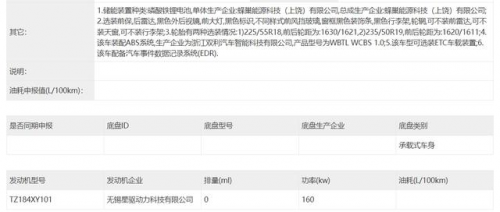 動力方面,申報信息顯示該車搭載的是來自無錫星驅(qū)動力科技有限公司生產(chǎn)的160千瓦電機,5款車型都是統(tǒng)一動力,配備來自蜂巢能源和江蘇耀寧新能源的磷酸鐵鋰電池組,最高時速175公里/小時。