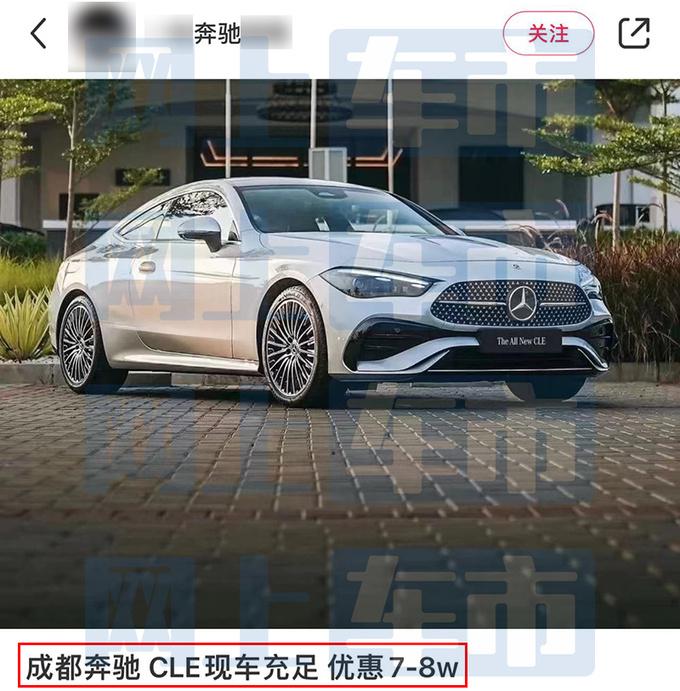 銷售員表示,上市僅2個月的CLE普通版現車優惠7萬-8萬,惠后起售價為38.76萬元,相當于打8.5折。