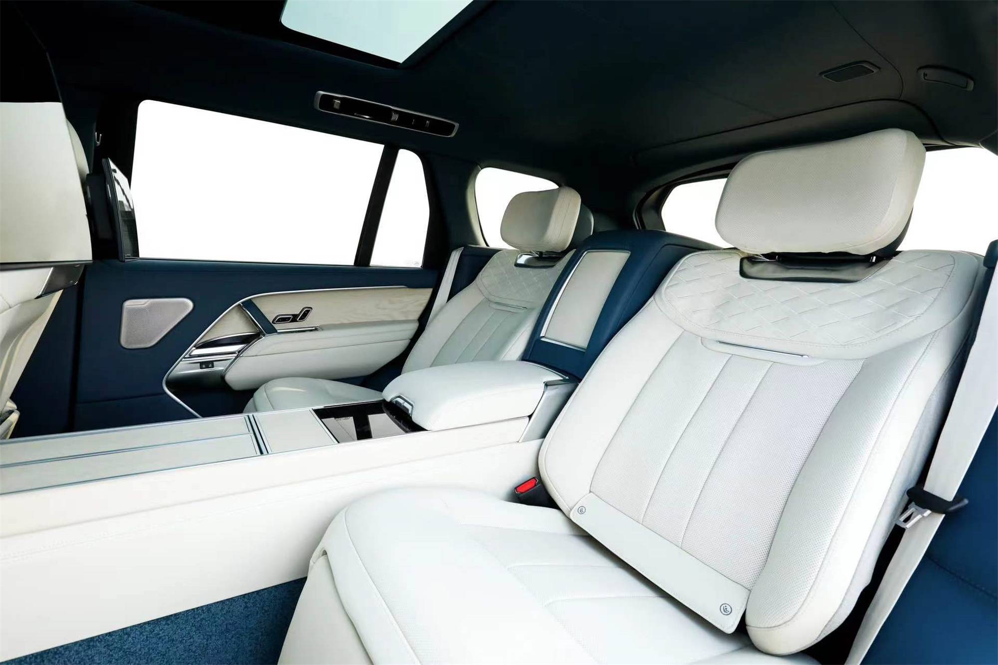 內(nèi)飾則帶有高檔刺繡的SV奢雅設(shè)計主題,提供了對比強烈的前后雙色調(diào)處理,并融入包括13.1英寸尊享觸控系統(tǒng)、獨有的13.1英寸屏幕后排娛樂系統(tǒng)、第三代主動降噪系統(tǒng)等一系列先進科技。而SV獨特的四座配置應(yīng)用在長軸距版車型上,配有電動折疊俱樂部桌板、高級冷藏箱、Dartington水晶玻璃器具。