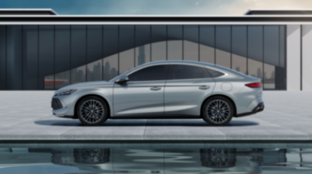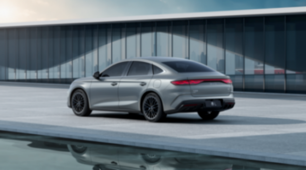 秦L側面采用了溜背式設計,呈現“寬體、低趴”的姿態,如蓄勢待發的騰龍。氣流可以沿著車身頂部曲線平滑通過,降低湍流、減少風阻,顏值與性能兼具;腰線從前翼子板處貫穿至后門,使得車身更加修長,搭配車門下方的內凹式筋線,營造出立體切割的效果,凸顯出整車的力量感。