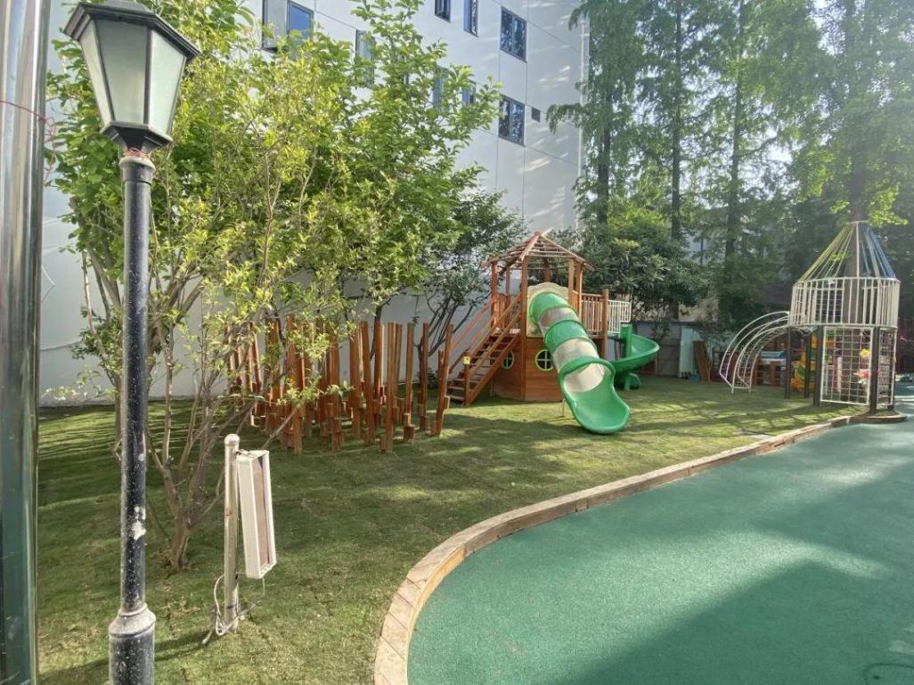 沿幼兒園一側(cè)建筑立面,在改造方案的設(shè)計(jì)和施工過程中,充分考慮保護(hù)幼兒園兒童安全與隱私、增強(qiáng)視覺效果等因素,對外立面空調(diào)外機(jī)進(jìn)行移除;減少開窗面積,僅預(yù)留了滿足消防排煙、通風(fēng)等要求的功能性窗;立面涂料選用無機(jī)涂料等環(huán)保材料,避免后續(xù)高空墜物等安全隱患,提高幼兒園師生日常教學(xué)的安全性、隱私性。