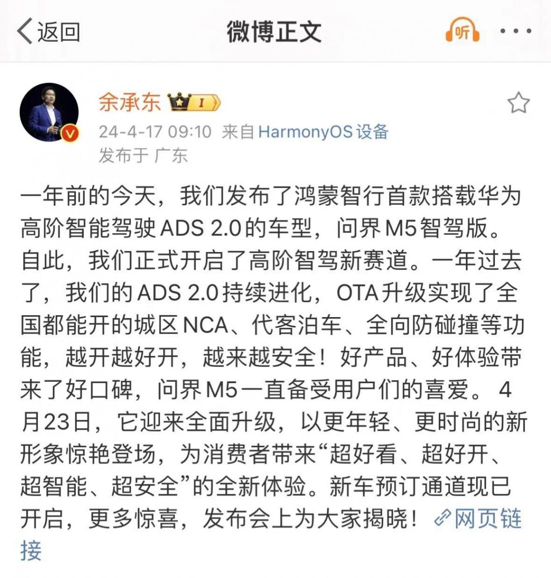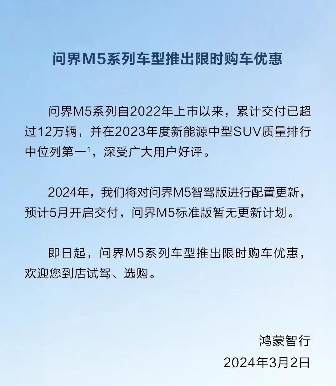 問界新M5定價下探沒懸念?老款變相降價促銷,新款訂單已破萬
