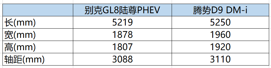 車身尺寸方面,別克GL8陸尊PHEV長寬高分別為5219mm/1878mm/1807mm,軸距3088mm,基本上跟燃油版車型保持了一致,但對比騰勢D9并沒有優勢。