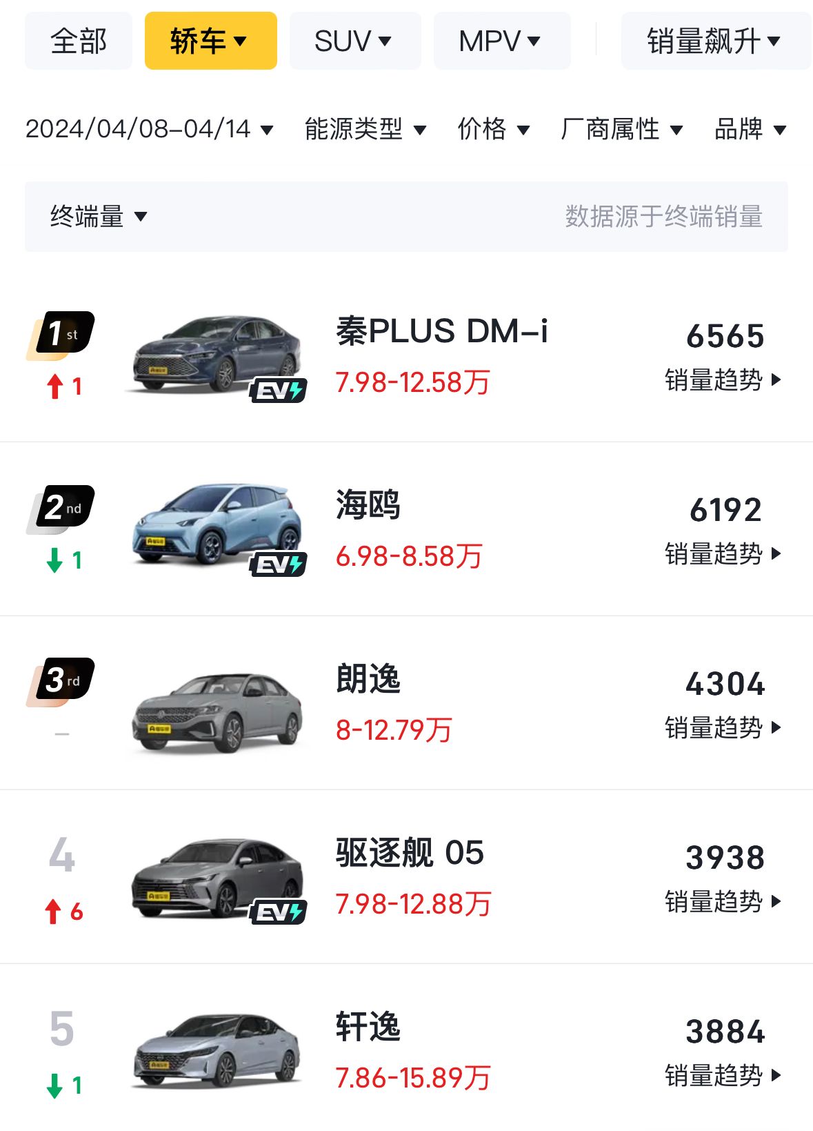 奪得轎車市場銷量亞軍的是海鷗,4月第二周,海鷗銷量6192輛。驅逐艦05位列轎車市場第四,第二周銷量成績為3938輛。相比4月第一周,驅逐艦05排名有所大幅提升,但銷量暫未超越榮耀版推出以來的最高記錄。