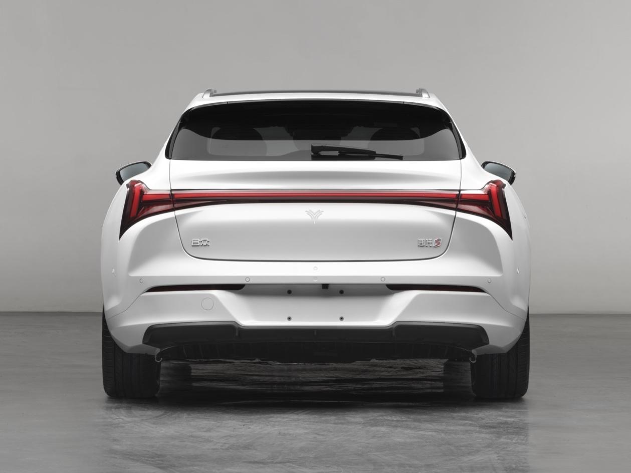 側(cè)面來(lái)看,新車(chē)側(cè)面線條較為流暢,隱藏式車(chē)門(mén)把手得以延續(xù)。此外,新車(chē)配備了雙五輻熏黑輪轂,配合紅色卡鉗看上去十分競(jìng)技。車(chē)尾部分,貫穿式的尾燈組造型在點(diǎn)亮之后極具辨識(shí)度。車(chē)頂?shù)臄_流板配合下方熏黑的后包圍,進(jìn)一步提升整體運(yùn)動(dòng)感。