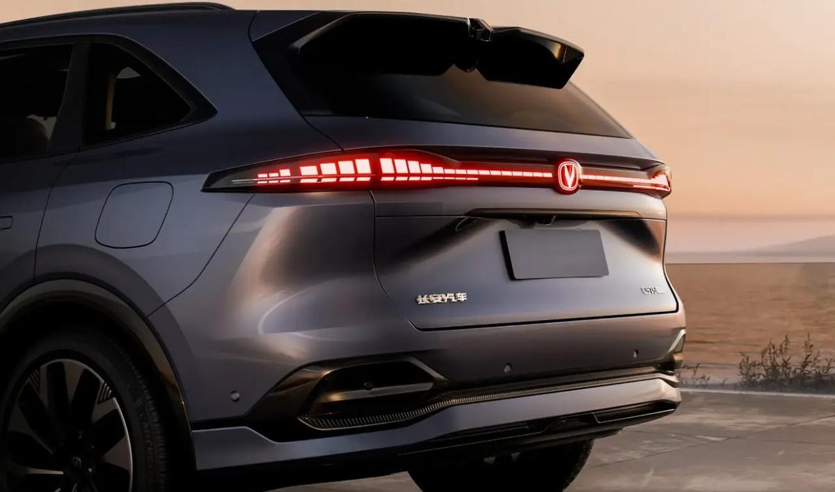 側(cè)身在一些細節(jié)上進行了調(diào)整,線條輪廓維持飽滿的設(shè)計風格,升級為隱藏式門把手,下側(cè)裙線條明顯隆起,彰顯出較強的力量感。尾部變化較大,車頂采用兩段式擾流板設(shè)計,貫穿式尾燈采用像素式光源布局,點亮后美觀且辨識度高。后包圍進行了內(nèi)凹處理,中間加入熏黑裝飾件點綴,烘托出較強的運動氛圍。