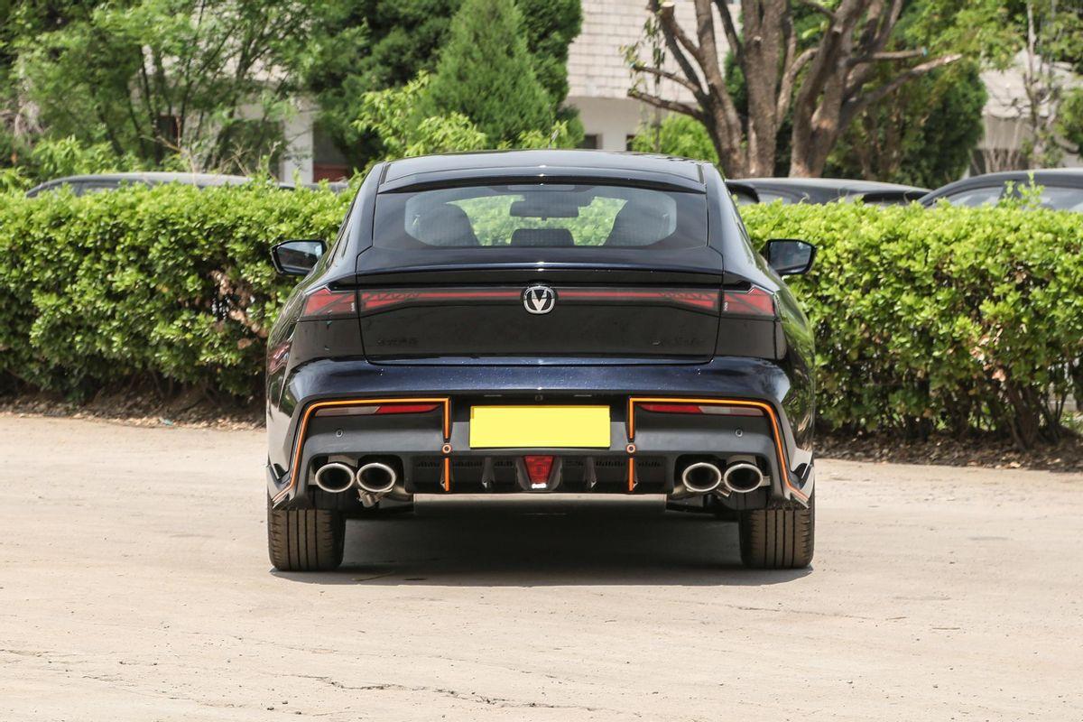 車尾部分,和前臉設(shè)計一樣,都是以運動為主旋律。加以熏黑處理的貫穿式尾燈組合以及雙邊共四出的排氣布局,看起來比較運動。值得一提的地方在于,長安UNI-V還將電動升降后擾流板應(yīng)用其中,除了看起來拉風(fēng)以外,升起的狀態(tài)下,可以實現(xiàn)增加約25公斤的下壓力,同時能夠降低0.007Cd的風(fēng)阻系數(shù),將對實車的性能發(fā)揮有所幫助。