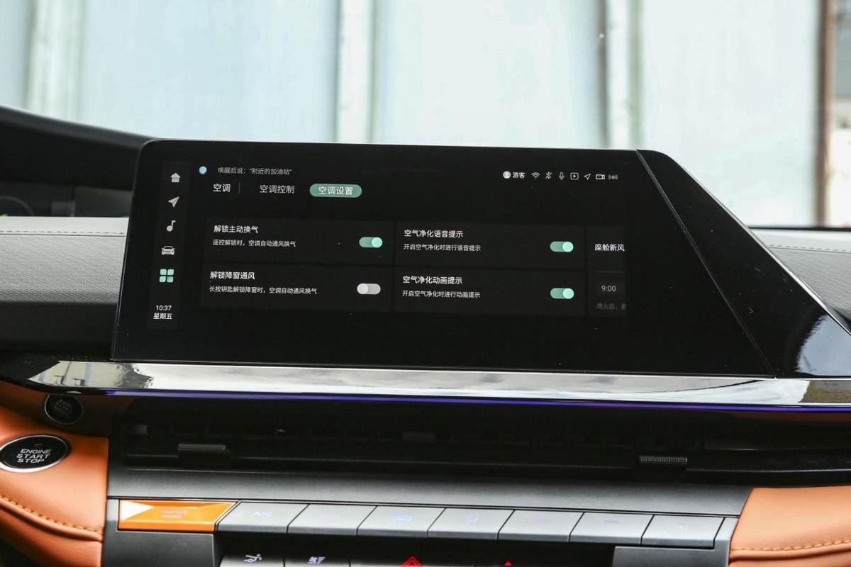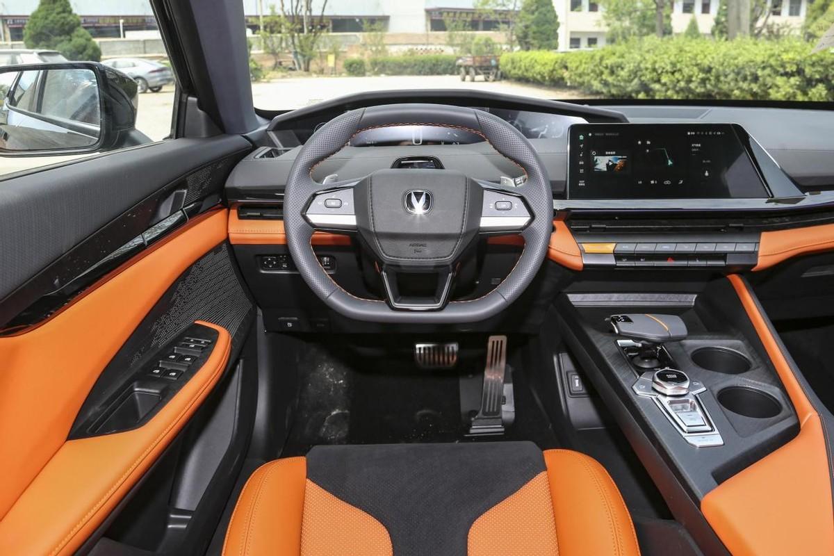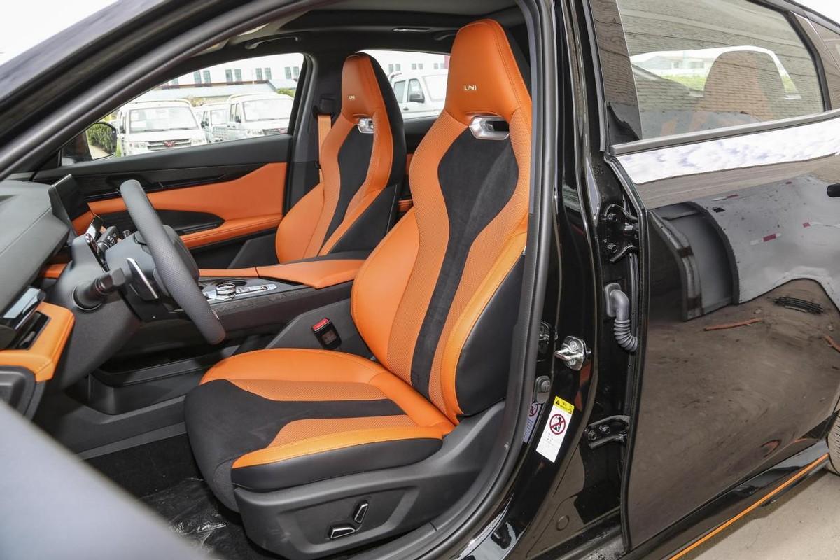 進(jìn)入到長安UNI-V的前排,其采用非對稱式的中控臺布局,傾斜于駕駛者一側(cè),并且扁平化的三輻式方向盤以及多塊液晶顯示屏的運用,也讓車內(nèi)看起來有著較強的運動感。并且車內(nèi)加入大量麂皮面料包裹,部分區(qū)域以橙色裝飾為點綴,摸起來實車質(zhì)感較為不錯。懸浮樣式的10.3英寸中控顯示屏,內(nèi)置了SuperFast車載智能芯片,常用的原廠原機(jī)互聯(lián)、GPS導(dǎo)航系統(tǒng)、車聯(lián)網(wǎng)、OTA升級和語音識別控制系統(tǒng)均有配備,并且還支持面部識別,其智能化表現(xiàn)能夠較好滿足日常使用。